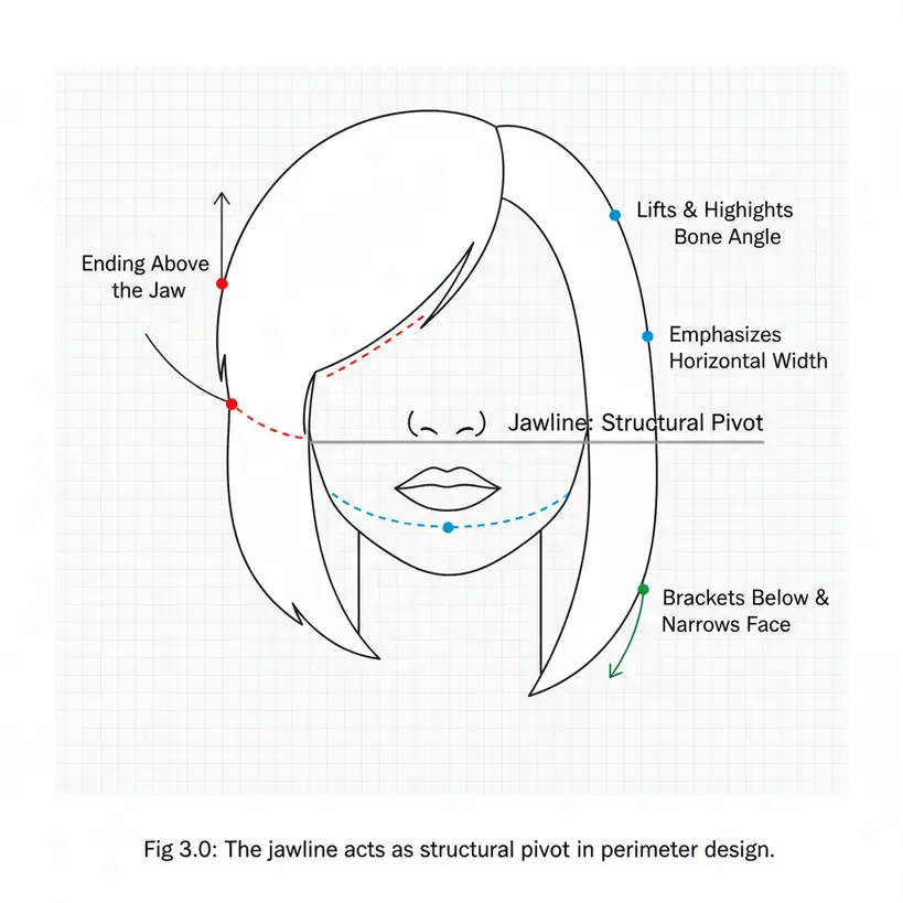 The jawline functions as the primary anchor point in most hair designs. Where the perimeter intersects the jaw determines how the lower face is perceived.