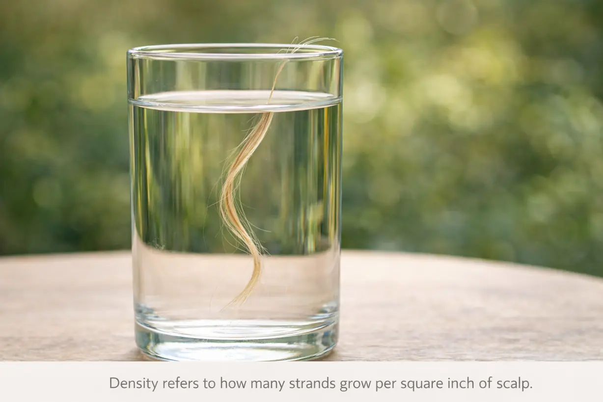 Density refers to how many strands grow on your scalp. Strand thickness refers to the diameter of one individual hair.
