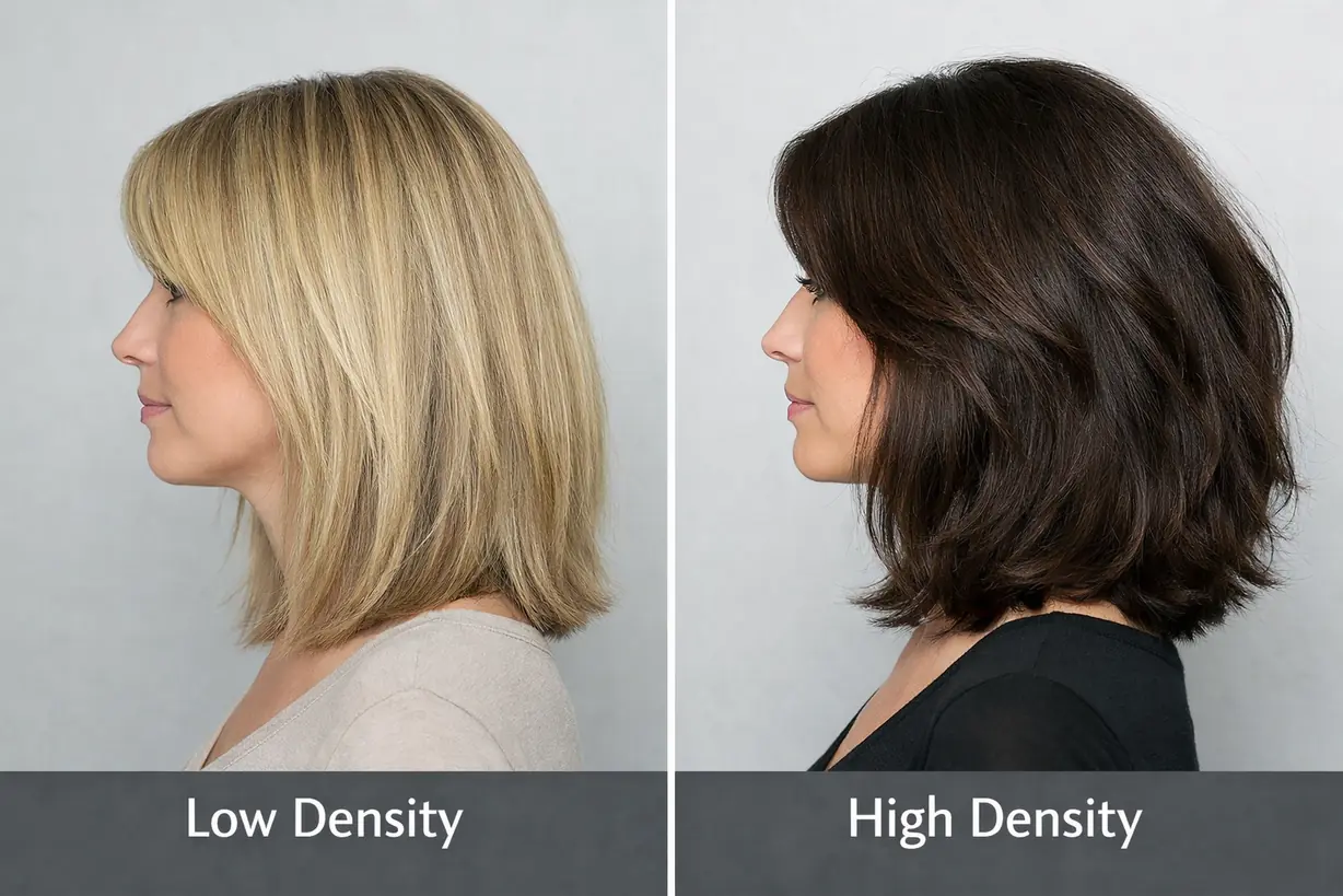 Hair density changes how medium-length hair holds volume, expands, or collapses as a structural system.